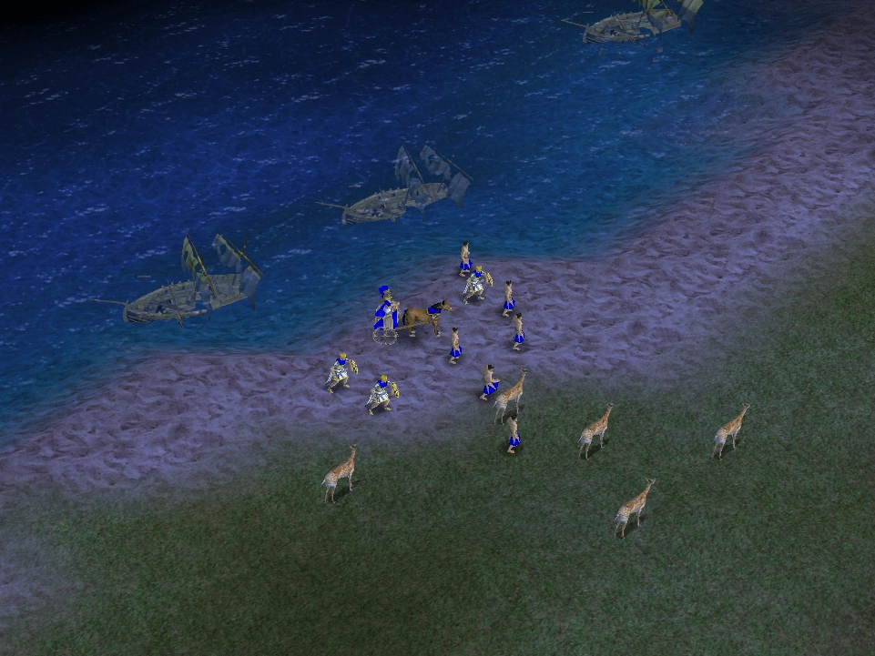 Tras tener por lo menos un profeta listo, concéntrate en recolectar mucha madera. Busca un lugar en la playa para poner un muelle y luego produce barcos de transporte suficientes; mejora su la velocidad.