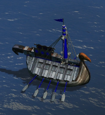 A small, oared ship with a light, ranged attack and a transport capacity of 30.