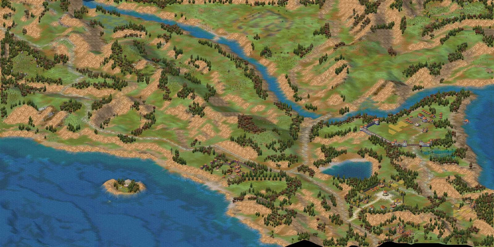- Farm: a new build command allows us to build a single Farm field (at the usual cost of 50 wood) in other locations than adjacent to a Granary. It is "hidden" because its button looks like the usual Granary building button. It is a useful command we want to use early.