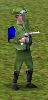 Travis Shackelford is a Warrior Hero in Empire Earth who is available in WWII. He appears in the German Campaign where he was the commanding officer of British forces in London. His appearance was heavily based on General George S. Patton. Also, his sound files starts with "dpatton". This could suggest that Shackelford was originally going to be named after the General himself. The reason why the developers chose a different name is unknown.